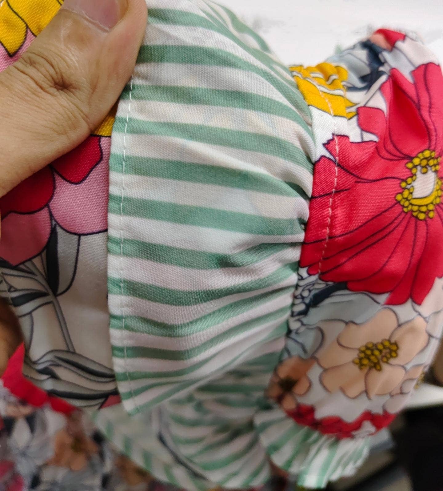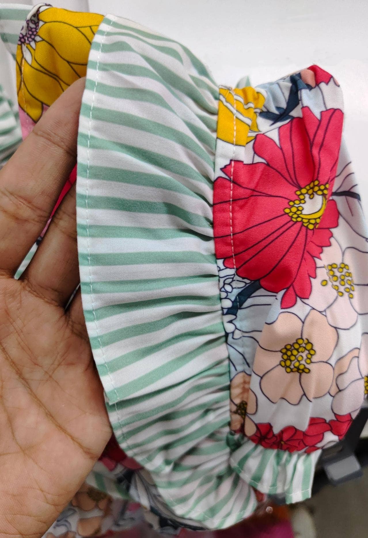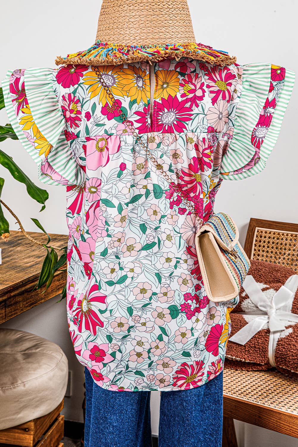 Fashion-W Floral Contrast Ruffle Trim Short Sleeve Blouse